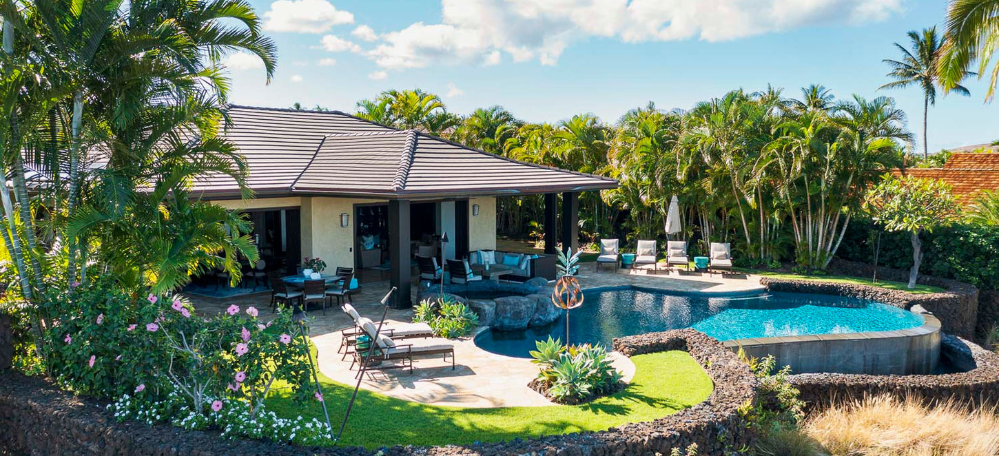 OVERVIEW 6,502 sq ft interior space; spacious lanai and dining space 4 bedrooms; the 4th bedroom is the private Ohana Cottage; 4.5 bathrooms; 4 tropical outdoor shower gardens Large heated infinity pool and spill-over spa overlook gorgeous ocean views; poolside fire pit Open floorplan with beautiful Asian and Hawaiian décor and custom furnishings; Creston “Whole Home” automation Recent updates at the estate include fresh interior paint and a new roof Complimentary maid service and grocery shopping service available Two 4-seater golf carts; a third cart may be available for rental No departure cleaning fees! LOCATION AND VIEWS Lalani Lau’eki is a 5-minute golf cart ride to the resort amenities, Four Seasons Hualalai restaurants, Trading Post, spa, tennis courts, gym, etc. Elevated panoramic views of the Pacific and Hualalai mountain Sweeping views of the 4th hole tee and 3rd hole of the Ke'olu Golf Course POOLSIDE, LANAIS, LANAI KITCHEN Large heated infinity-edge pool with underwater sound system is surrounded by tropical gardens Poolside tiki torches flame at sunset for outdoor dining and romantic moments Dramatic Hawaiian sunset views and panoramic ocean and golf course views Ample poolside seating and chaise lounges (6); outdoor dining table seats 6 Lush tropical gardens surrounding property provides private and tranquil ambiance Built-in Lynx gas BBQ with side burners; OCI cooler GREAT ROOM Expansive foyer with beautiful art leads to the Great Room (500 sq ft). Pocket sliding doors open to large lanai to reveal stunning ocean and Hawaiian sunset views. Perfect indoor/outdoor living. Exquisite décor with comfortable sofas and seating 60” Direct TV with Apple TV; built-in Bose surround sound CHEF’S KITCHEN AND DINING ROOM Spacious Chef’s Kitchen is fully equipped with high-end stainless appliances including Dacor 6-burner professional gas cooktop, 2 convection ovens, warming drawer, wall-mounted pot filler, foot pedal operation for kitchen sink; Dacor refrigerator and microwave; separate ice maker and wine refrigerator; vegetable sink; drop-down TV in kitchen Chef’s Table seats 5 and overlooks tropical gardens Fully stocked with kitchen appliances (blender, Cuisinart, Keurig coffee maker, etc.) Open to Great Room and Dining Room with ocean and pool views; large formal dining table seats 8; bar seats 5 MEDIA ROOM/OFFICE Comfortable L-shaped sofa; 60” TV with surround sound; built-in desk and printer BEDROOMS/BATHROOMS ~ Overview 3 bedrooms in main house (4th bedroom is a separate private Ohana Cottage with en suite) 4 bathrooms with tropical outdoor shower gardens; beautifully appointed Powder Room Luxurious linens, towels and spa robes for all guest suites; Hualalai-quality initial bath products provided; personal safe for valuables GRAND MASTER SUITE ~ Ocean Views King Bed. Large en suite bathroom with walk-in shower and large soaking tub; private outdoor shower garden; Black-out louvered doors; 42” Direct TV with Apple TV; 2 in-mirror TVs above dual vanities. JUNIOR MASTER SUITE King bed. Large en suite bathroom with walk-in shower and large soaking tub; private outdoor shower garden; Direct TV with Apple TV GARDEN SUITE Queen bed. Large en suite bathroom with walk-in shower and large soaking tub; private outdoor shower garden; Direct TV with Apple TV; private entrance from courtyard PRIVATE OHANA COTTAGE Queen bed. Large cottage is detached from the main house; perfect for nanny, chef, private retreat or office; en suite bathroom with large walk-in shower and private outdoor shower garden Well-equipped Cottage Kitchenette includes mini-refrigerator, dishwasher, microwave, Keurig coffee maker, sink; bar seating for two; Direct TV with Apple TV OTHER FEATURES AND AMENITIES Two golf carts (a third cart may be available for rental) Complimentary maid service is provided four (4) hours twice weekly (holidays and weekends excluded) Zoned air conditioning and ceiling fans throughout; WIFI throughout most of the house Laundry room with full-size washer, dryer and sink Pack'n Play, highchair and diaper genie provided at no charge. Crib and/or stroller rental available. Beach chairs, coolers and beach towels available Kema Kama Guest Concierge will be available to assist you throughout your stay You will be personally greeted upon arrival and a full orientation of the features and amenities of the home will be provided. A delicious array of snacks will be waiting for you We craft Kema Kama Signature LUXcursions especially for you. Guests tell us these once-in-a-lifetime experiences create lifelong unforgettable cherished memories. Cultural experiences may be included. Access to our preferred Private Chef List. GUEST PRIVILEGES AND RESORT FEES Access to Club Concierge if Guest is paying resort fees Resort charging privileges for Four Seasons pools, spa, tennis, golf, fitness center, restaurants and other resort amenities (no access to the Owners' Canoe Club or Ke'olu Golf Course) if paying resort fees. Resort Fees: The resort policies and daily resort fees vary throughout the year from $72/day to $224/day for each adult. Resort fees for children ages 5-13 range from $36/day to $112/day for each child. All details, including options for paying the resort fees, are available upon request. Note: Should guest choose to Opt Out of paying daily resort fees, guest will still have access to the beach and restaurants CANCELLATION POLICIES Please request the details of the Kema Kama cancellation policies. PROFESSIONALLY MANAGED The Lalani Lau'eki Estate is professionally managed by Kema Kama known for superior standards and consistent quality for over 12 years at Hualalai. Kema Kama offers dependable service and prompt communication with guests. The Kema Kama team of property management professionals are dedicated to excellence and will assure that your stay is exceptional. TA-191-379-4560-01; GE-191-379-4560-01; STVR-19-360149 Four Seasons Daily Resort Fee Information | Click Here